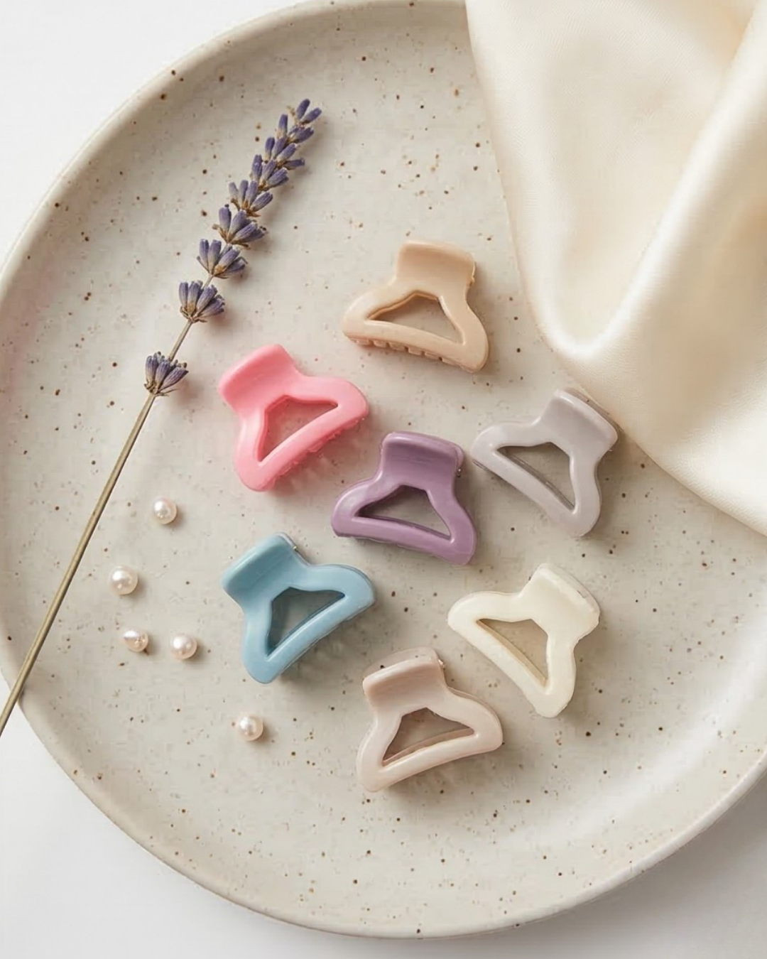 Add a pop of color to your daily look with this Mini Pastel Matte Claw Clip Set. These tiny but mighty accessories are a must-have for the modern “clean girl” aesthetic. Moving away from standard plastic clips, this collection features a sophisticated matte finish that feels as good as it looks. The set includes a beautiful spectrum of candy-colored hues, allowing you to mix and match them to suit any outfit or mood.
