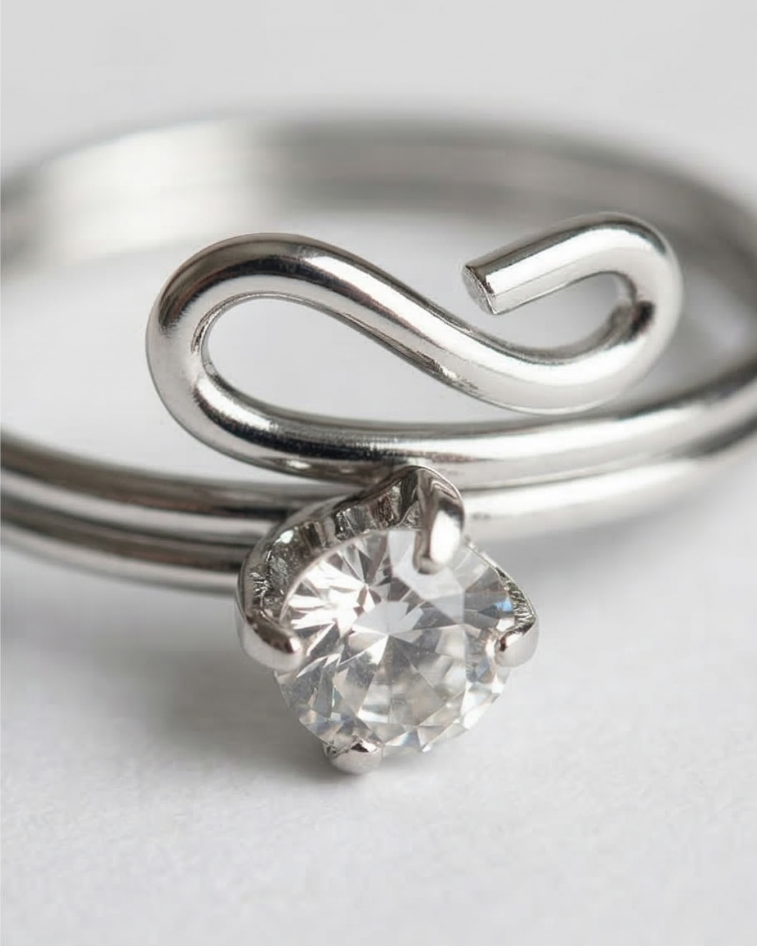 Add a touch of artistic flair to your jewelry collection with the Silver-Tone Infinity Wrap Solitaire Ring. This artificial fashion piece reimagines the traditional solitaire by incorporating a graceful, wave-like bypass design. The band features a double-layered look that curves into a polished “S” shape, elegantly cradling a radiant multifaceted stone. This architectural approach makes it a standout accessory that feels both timeless and avant-garde.
