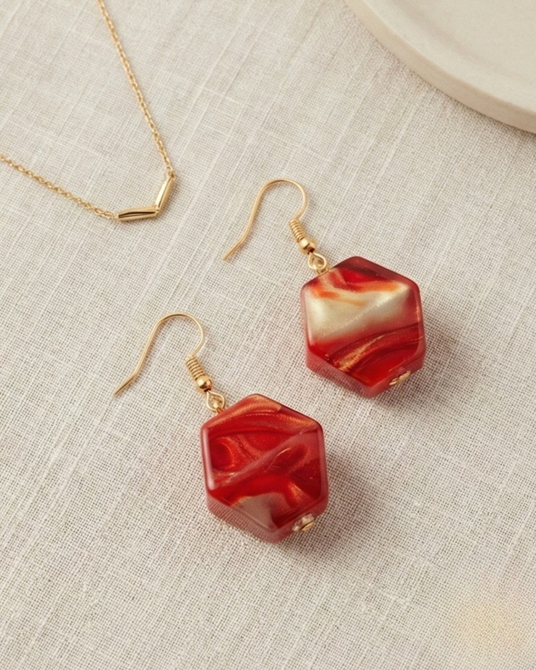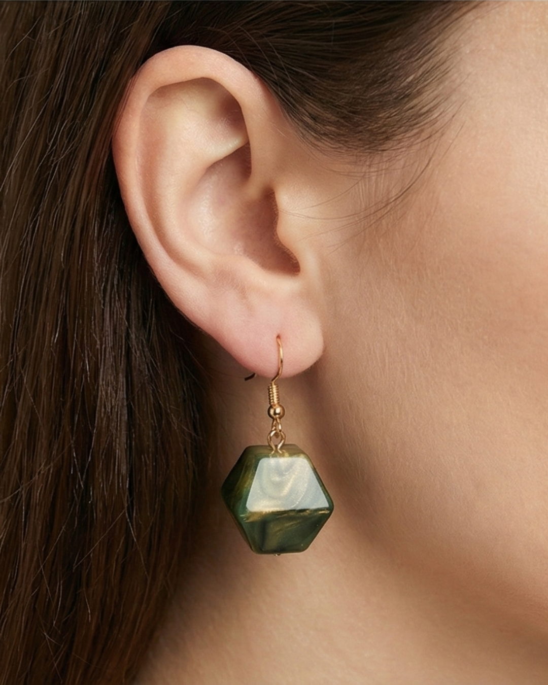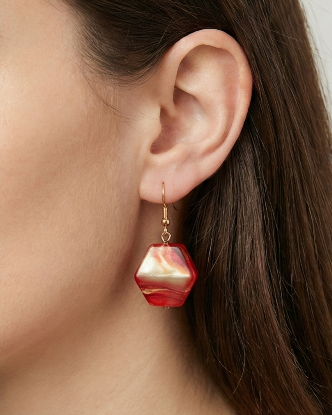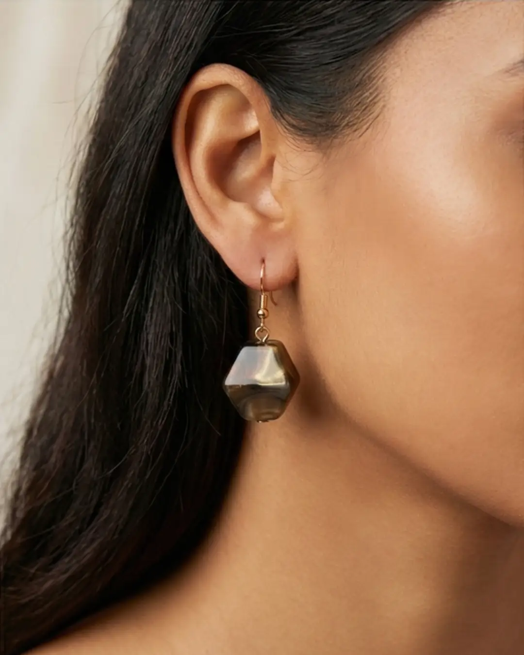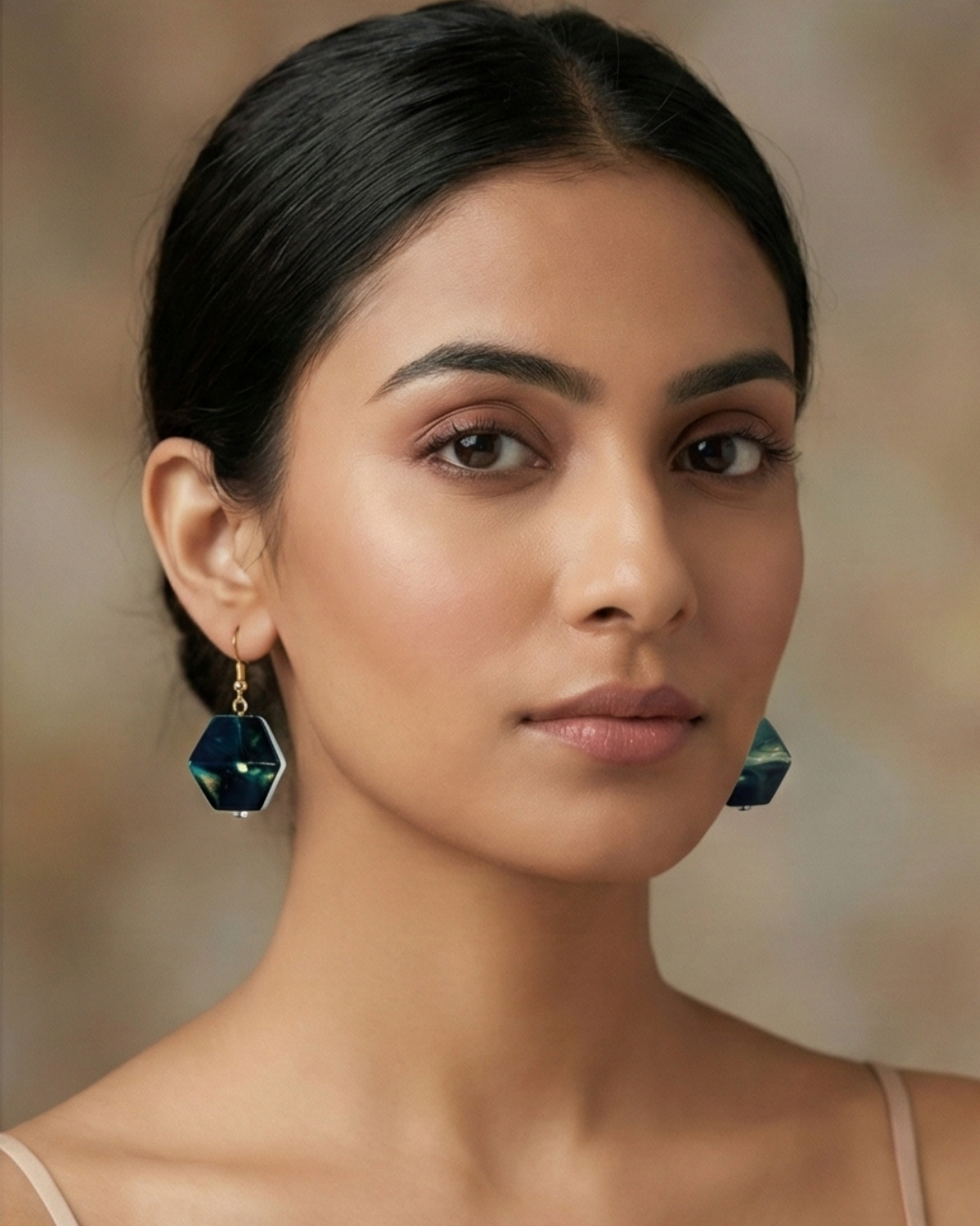 The Hexagonal Polygon cut offers a bold, architectural look that pairs perfectly with modern western wear, Korean-style outfits, or even a contemporary saree. Whether you choose the deep Mocha Brown, the vibrant Ruby Red, or the elegant Emerald Green, these earrings are designed to make you stand out.