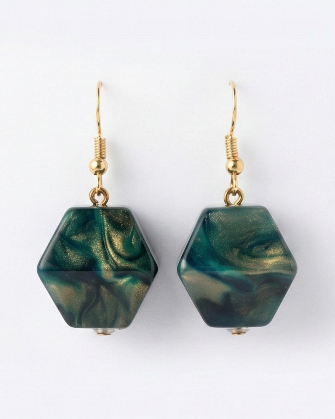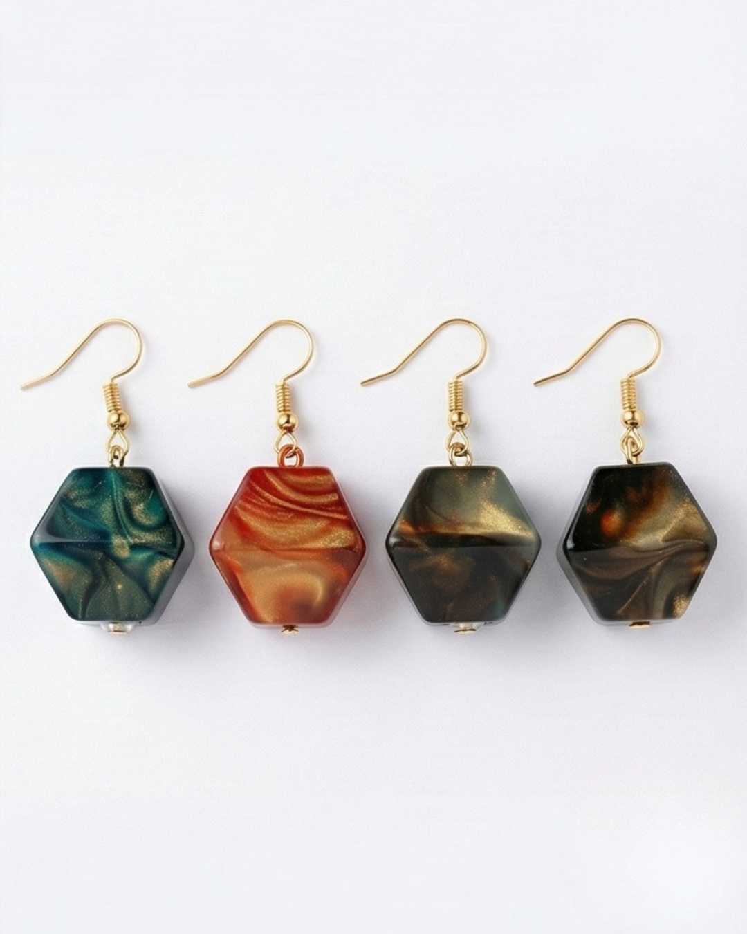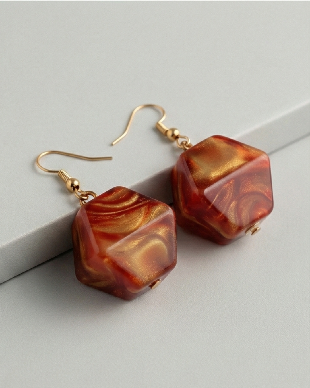 Elevate Your Style with the Magic of Marble Step into the world of modern elegance with our Geo-Luxe Marble Resin Earrings. These aren’t just accessories; they are a statement of sophistication. Inspired by the natural flow of agate stones, each earring features a deep, glossy base infused with shimmering gold foil swirls that catch the light from every angle.